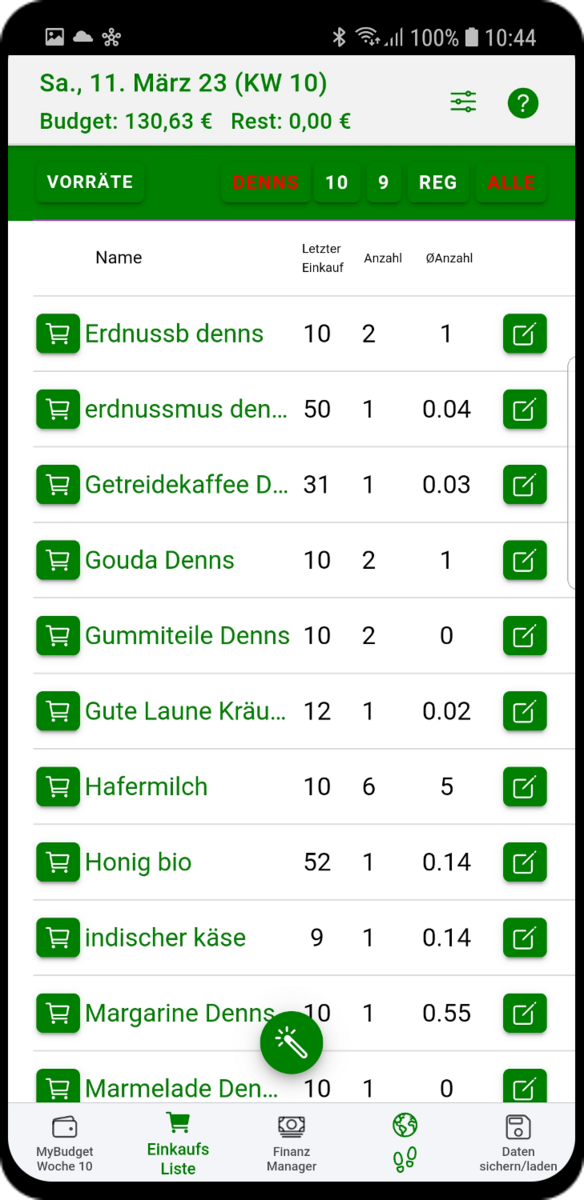 Und Klick: MyBudget zeigt jetzt ganz einfach, was zu Hause noch im Schrank steht. In den Vorräten kann man selektieren nach Shop, nach allen regelmäßigen Dingen, oder nach den Einkäufen der aktuellen und letzten Woche. Damit ist man mit wenigen Klicks überall immer auf dem Laufenden und weiß zum Beispiel, ob man vielleicht doch noch Honig einpacken sollte oder eben doch noch genug daheim hat. 😊